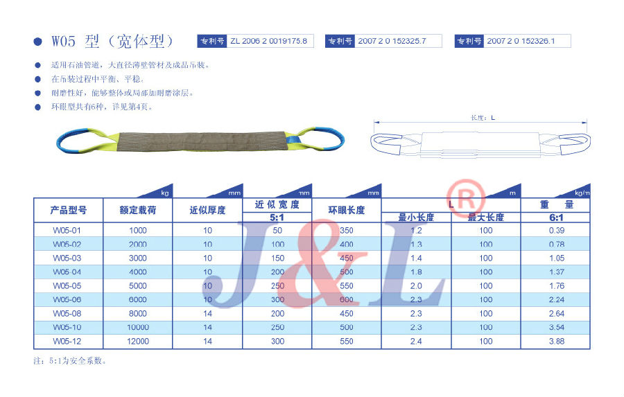 高強型扁平吊裝帶采用進口超高分子量聚乙烯纖維制作,體積小、重量輕、柔軟、安全、伸長率低、耐紫外光輻射、耐磨、耐沖擊、耐酸堿腐蝕、不導電、使用壽命長的優點。制作額載1-50T,6倍安全系數。
